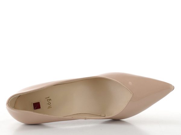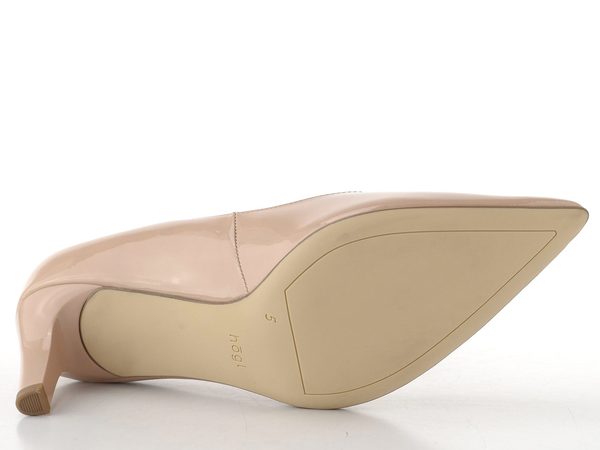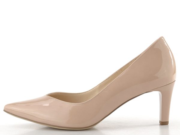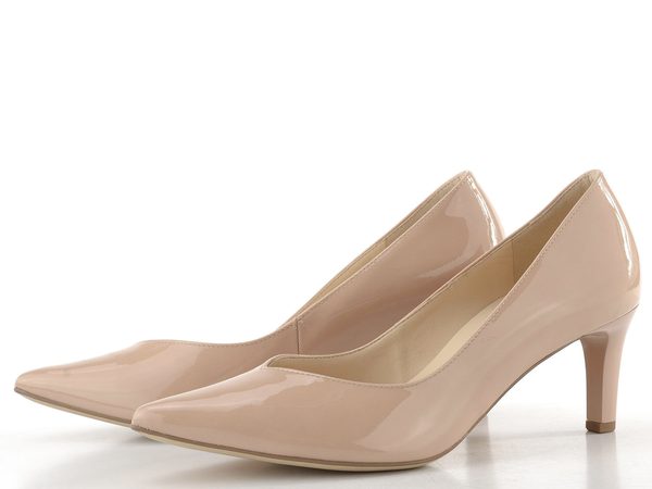 Elegantní dámské lakované lodičky na štíhlém, středně vysokém podpatku.