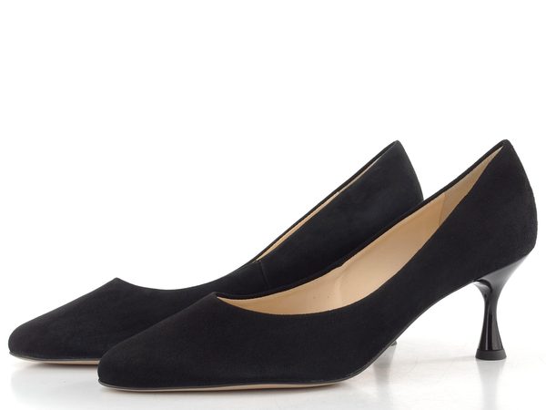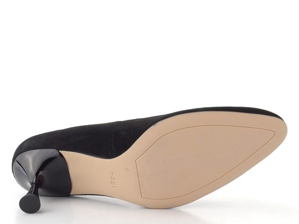 Dámské elegantní černé lodičky ze semišové kůže na jehlovém podpatku.
