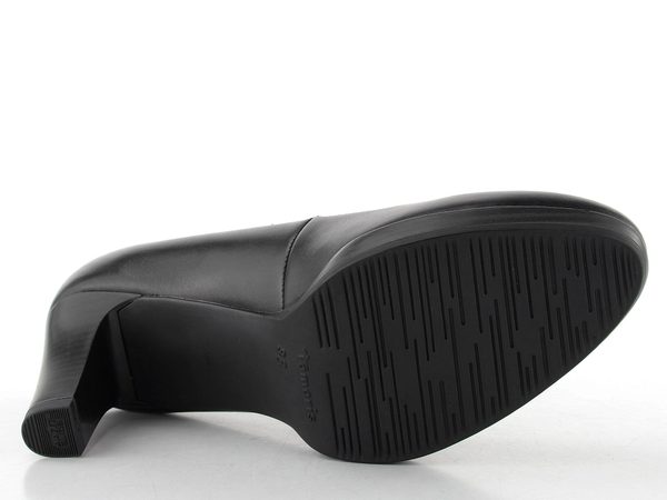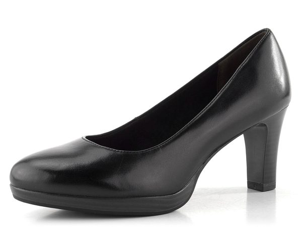 Jednoduché dámské kožené lodičky v černé barvě, na vyšší platformě a s funkčním podpatkem, který odlehčí vaší páteři.