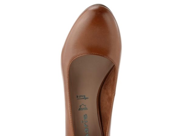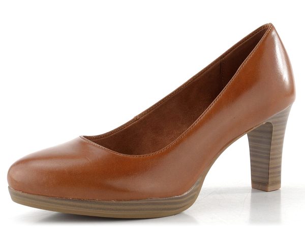 Jednoduché dámské kožené lodičky v přírodní hnědé barvě, na vyšší platformě a s funkčním podpatkem, který odlehčí vaší páteři.